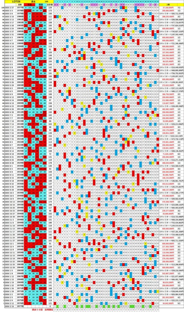 ロト6 【ロト6】狙いやすい過去50回・100回データ! 次回2077回(R8.2.16 月) 当選出目を予想!